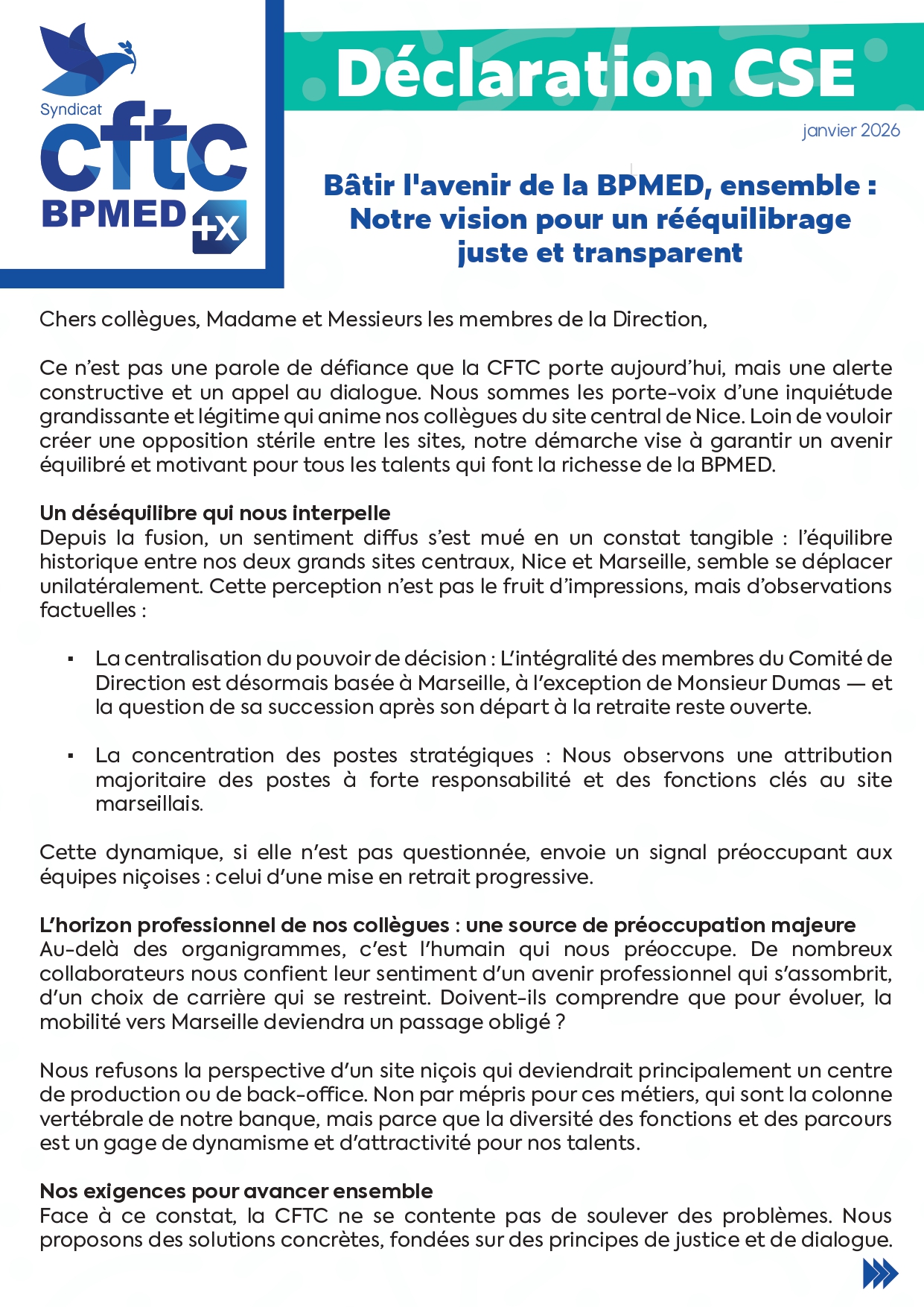 Bâtir l'avenir de la BPMED, ensemble : notre vision pour un rééquilibrage juste et transparent.