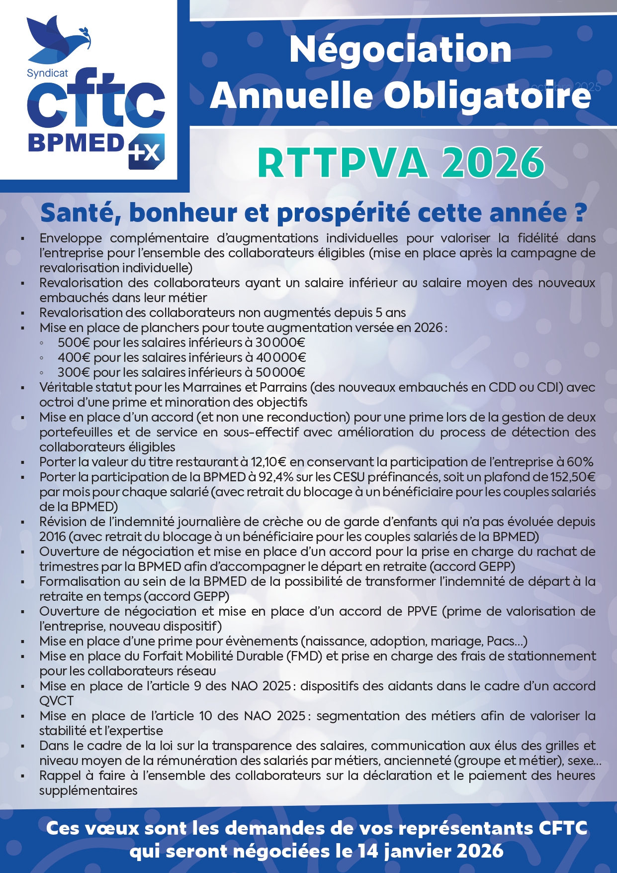 Début des Négociation Annuelle Obligatoires (NAO) de la branche.